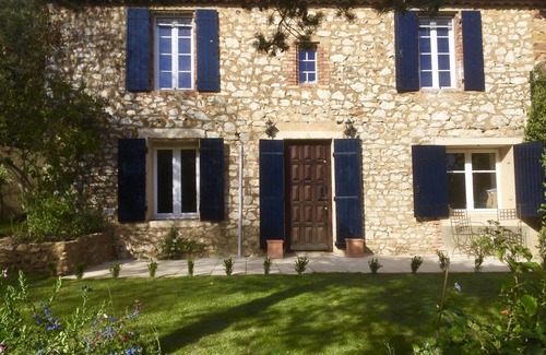 My 19th C property is a French country oasis, where you and your family can enjoy local food and wines, family games, swimming and sunbathing by the pool in privacy. Sample french cuisine and exceptional wine from local vineyards at the Village cafe (breakfast, lunch or dinner) or on the rear terrace, with seating up to 8 and a family-sized, stone BBQ. The alarmed, private pool, 10’ x 16’, is unique for the region with a shallow end of 3’ sloping down to 6’. Pool and s lighting insure that activities can extend from day well into the night. Grassy 'play ground’ is designed for badminton, croquet, boules, or other provided family games, and there is a village tennis court within walking distance! You can choose to hike up ancient village paths for spectacular views or explore enchanting neighboring villages on bike or horseback. Or just relax, reading by the pool surrounded with fragrant flowers and woodland hills.