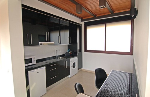 Suite with spacious bedroom with king-size bed; android TV 32 '; spectacular views of both sides, even from the bed, through large windows, and can be seen volcanoes and beaches. Fully equipped kitchen (microwave, refrigerator, washing machine, etc.). Bathroom with shower telescopic column. Lounge with android TV 32 'and designer sofa, with access to a balcony with two chairs and splendid views of the islands of Lanzarote and Lobos. The suite, completely new, has quality finishes, wooden ceilings and adjustable lighting intensity that creates the perfect atmosphere for every occasion.