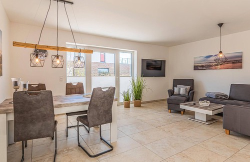 The comfortable holiday home with good standards and attractive furniture is spread over two floors and offers ideal conditions for a family holiday in Schleswig-Holstein. On the ground floor you will find the bright living area with sofa corner, open-plan kitchen and dining area, where you can spend cosy hours with family or friends. The upper floor houses the two bedrooms, which are furnished with a double and a single bed. For extra comfort, the entire house is equipped with underfloor heating. The house also has an open terrace where you can relax in the sun and enjoy a peaceful holiday.