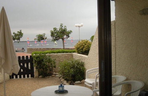 Beach edge of the marine lake, 100 m from the pool and 1000 m from the sea, with panoramic views of the Pyrenees and Canigou culminating at over 2800 m