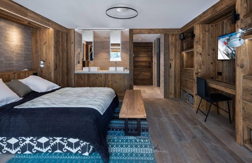 The 412m² Hermine Blanche chalet is located in the Fornet area of Val d'Isère, about 200 meters from the ski lifts. Hermine Blanche offers you a nice space in the living room with large windows that give you access to a unique view of the Val d'Isère mountains. The access to the large terrace offers a Nordic bath as well as deckchairs to relax after a good day of skiing. You will also find a wellness area including an Italian shower, a hammam, an indoor jacuzzi, a massage room and a sauna. Skiing is very comfortable thanks to its ski-room that will keep your boots warm during the night. Surface area : about 412 m². Orientation : South. Hall. Laundry room with washing machine, dryer. Level 1 : 2 Master suites with twin bed (180 x 200), bathroom. Bedroom with armchair, 6 bunk beds (90 x 200 pour enfants), bathroom. Level 2 : Master suite with 2 twin beds (160 x 200), bathroom. Master bedroom with Deskroom, twin bed (180 x 200), closet, cupboard, bathroom, terrace, TV. Nordic Bath. Level 3 : Dining area. Living room with fireplace. with coffee machine (Nespresso), Wine cellar, oven, toaster, hood, dishwasher, 2 induction cooking rings, fridge. Terrace. The beds in elevation are not suitable for children under 6 years.