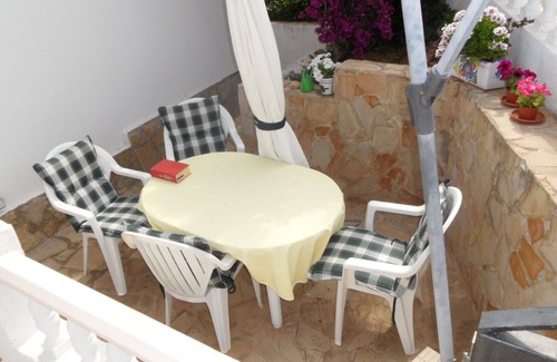 This apartment is fitted out to be comfortable and cosy, and is an ideal, relaxing getaway for a couple or small family looking for high quality communal amenities, within a tranquil safe and secure setting. Denia and Oliva are only 10 minutes drive in either direction on the coast and the local “Campo” (countryside) is stunning all year round. This apartment will appeal to serious and recreational walkers with some of the finest scenery and a mixture of challenging and relaxing walks on the doorstep with no need to drive. There is ample seating for diners inside and out on the terrace, parasols provide plenty of shade and the living area as also the bedroom comes with air conditioning throughout. The main open plan living room / diner / american style kitchen is spread across the whole of the apartment and accesses the terrace. The kitchen is extremely well appointed, in the living room there is a satellite TV and DVD. The bedroom is light and airy with door/windows overlooking the terrace and a convenient family bathroom with shower. This apartment is a peaceful high quality get away on an award winning complex.