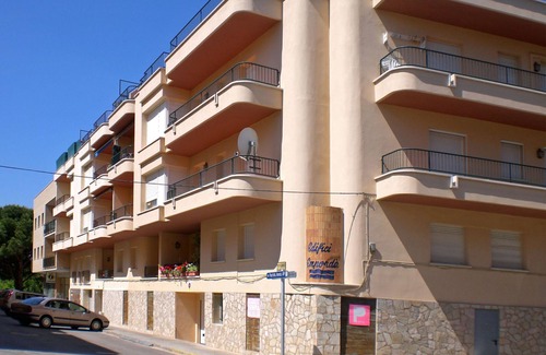 Port de Llançà: Apartment block "Emporda", 4 storeys. 50 m from the centre of Port de LLançà, in a central position, 100 m from the sea, 100 m from the beach, in a cul-de-sac, located by a road. Public parking on the road. Shopping centre 300 m, restaurant 100 m, bakery 200 m, internet café 300 m, pebble beach "Platja del Port" 100 m, diving center 400 m. Sports harbour 300 m, golf course 17 km. Groups of teenagers on request only.