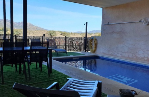 This detached holiday home in Navas de Estena (Cabañeros National Park) is the perfect place to stay for up to 6 people. With 2 bedrooms and 2 bathrooms equipped with shower, this accommodation offers privacy and comfort. Enjoy refreshing moments in the exclusive use swimming pool or relax in its exclusive garden. The house has a terrace, balcony and a private roof terrace, ideal spaces to enjoy outdoor moments without leaving the house.