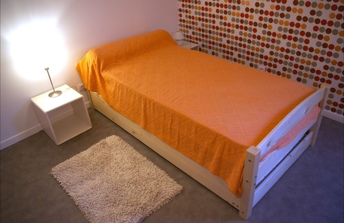 2 bedrooms (1 bed 140, 3 beds 90 - cot on request), bathroom (washing machine), kitchen (dishwasher) / living room (sofa, chairs, wood stove, TV), bathroom games / bedroom (sofa BZ 140, TV), full electric heating, private closed terrace (50m2), non grassed lawn (150m2), private parking, garden furniture, plancha, tourist tax.