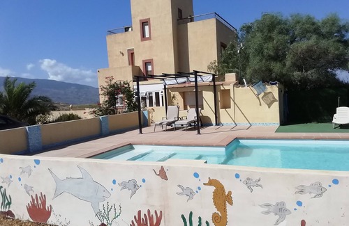There are uninterrupted views to the mountains. We are on the edge of the Tabernas desert so ideal for ramblers, artists and just relaxing.