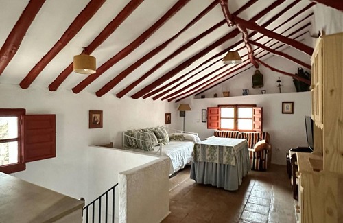 La Casa del Palomar in Otura is ideal for a relaxing holiday. The 65 m² property is part of a rural house complex almost two centuries old. It consists of a loft-style floor with a living area, kitchen and two single beds, and on the ground floor you will find a bedroom and a bathroom, accommodating 4 people. A cot is also available. The accommodation does not have air conditioning, but there are fans. Outside, you can enjoy a small pool located next to an olive grove and a tobacco drying house. Its use is shared with the rural house La Casa del Colono.